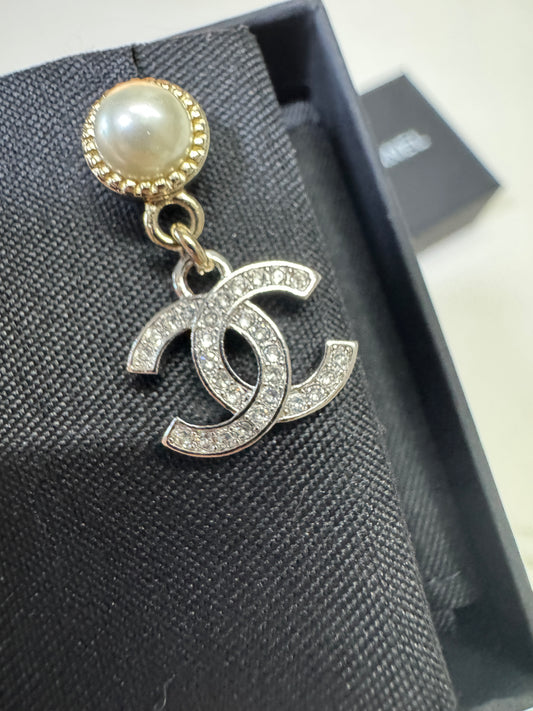 CHANEL 24K金銀雙色珍珠耳環