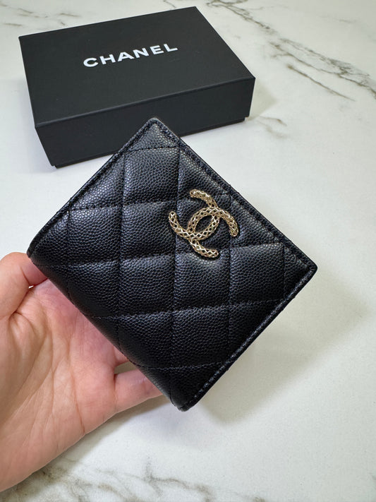 CHANEL 23P 鏤空扣 兩摺錢包 黑