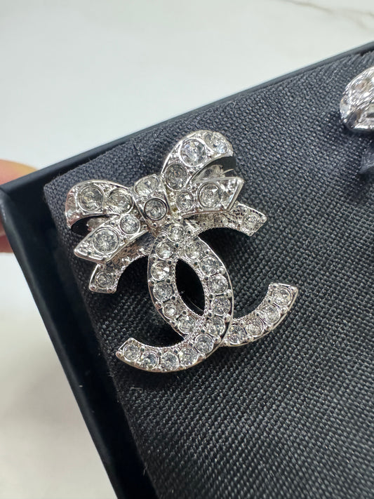 CHANEL 23S 蝴蝶結水鑽耳環