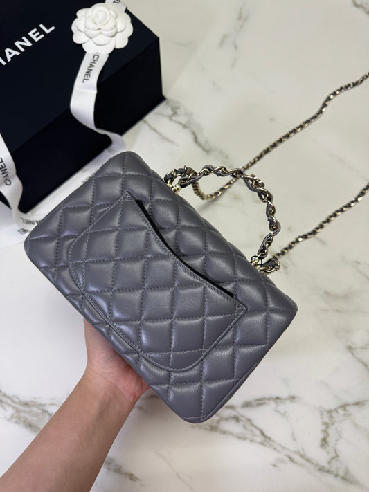CHANEL 23K Mini CF with Top Handle 手柄CF 深灰色羊皮