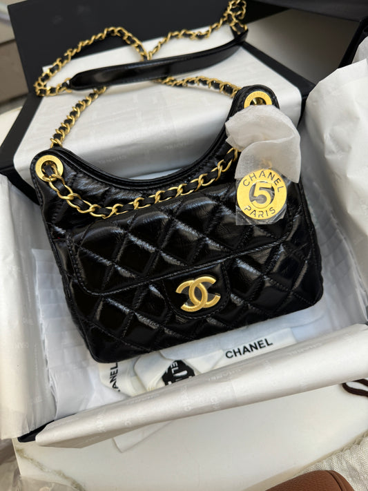CHANEL 24A Hobo 小號 油臘皮黑色