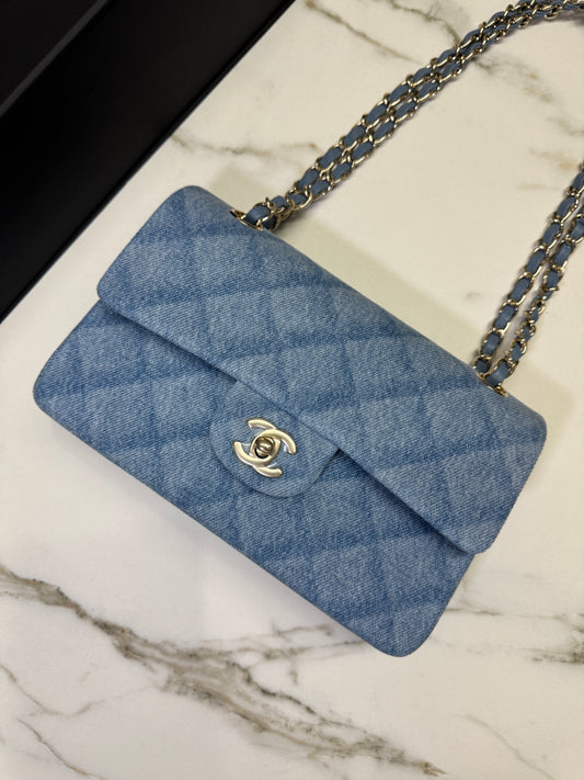 CHANEL 淺牛仔 CF23 淺金扣 Classic Flap Small[極罕少量]