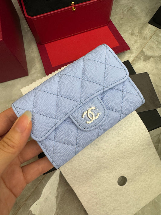 CHANEL 經典卡包 23P寶寶藍 銀扣