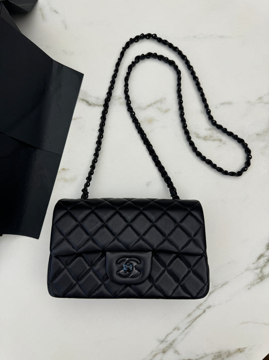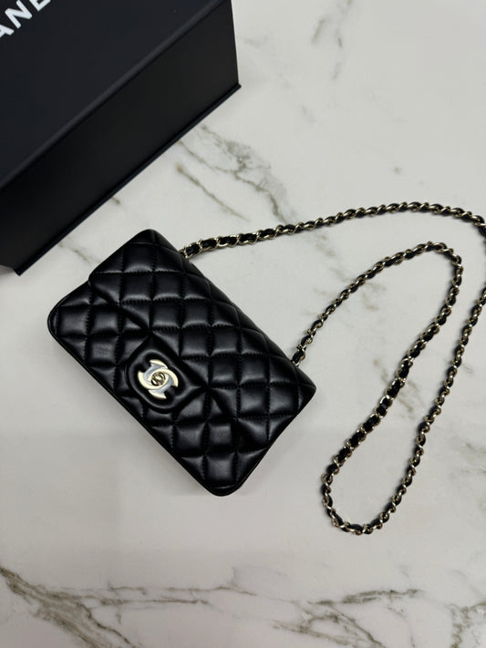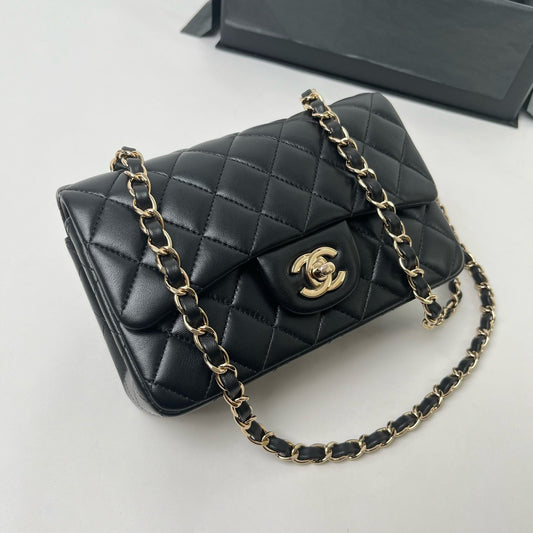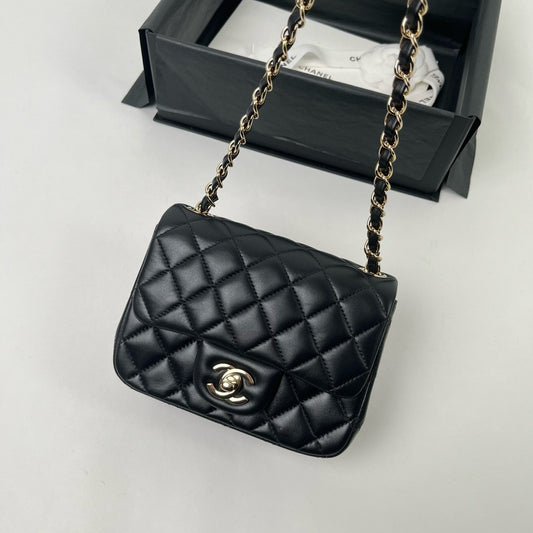 CHANEL CF17 方胖子 黑金羊皮 mini square