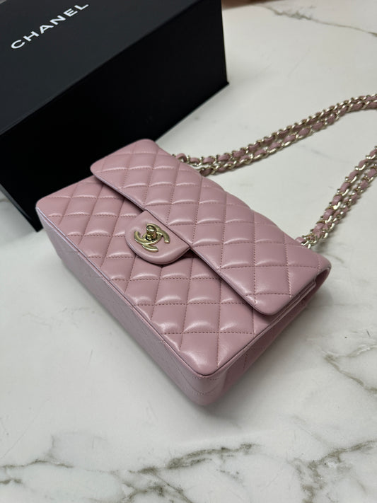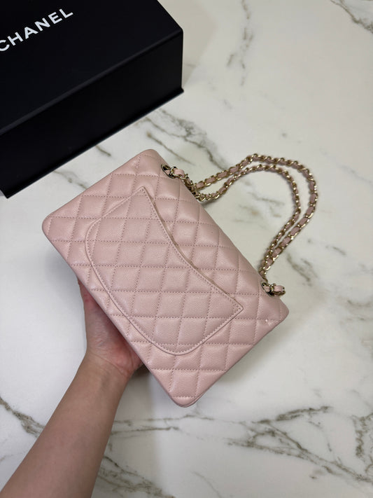 CHANEL CF25 24P櫻花粉羊皮 淺金扣