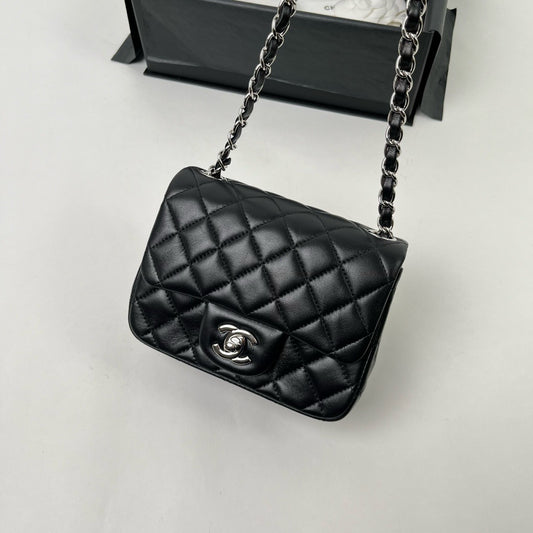 CHANEL CF17 方胖子 黑銀 羊皮 mini square