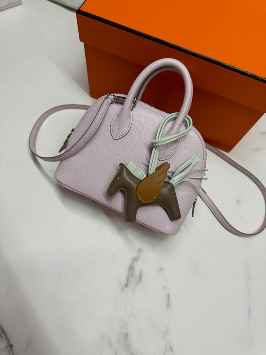 HERMES Mini Bolide 夢幻紫 山羊皮 銀扣 09Mauve Pale