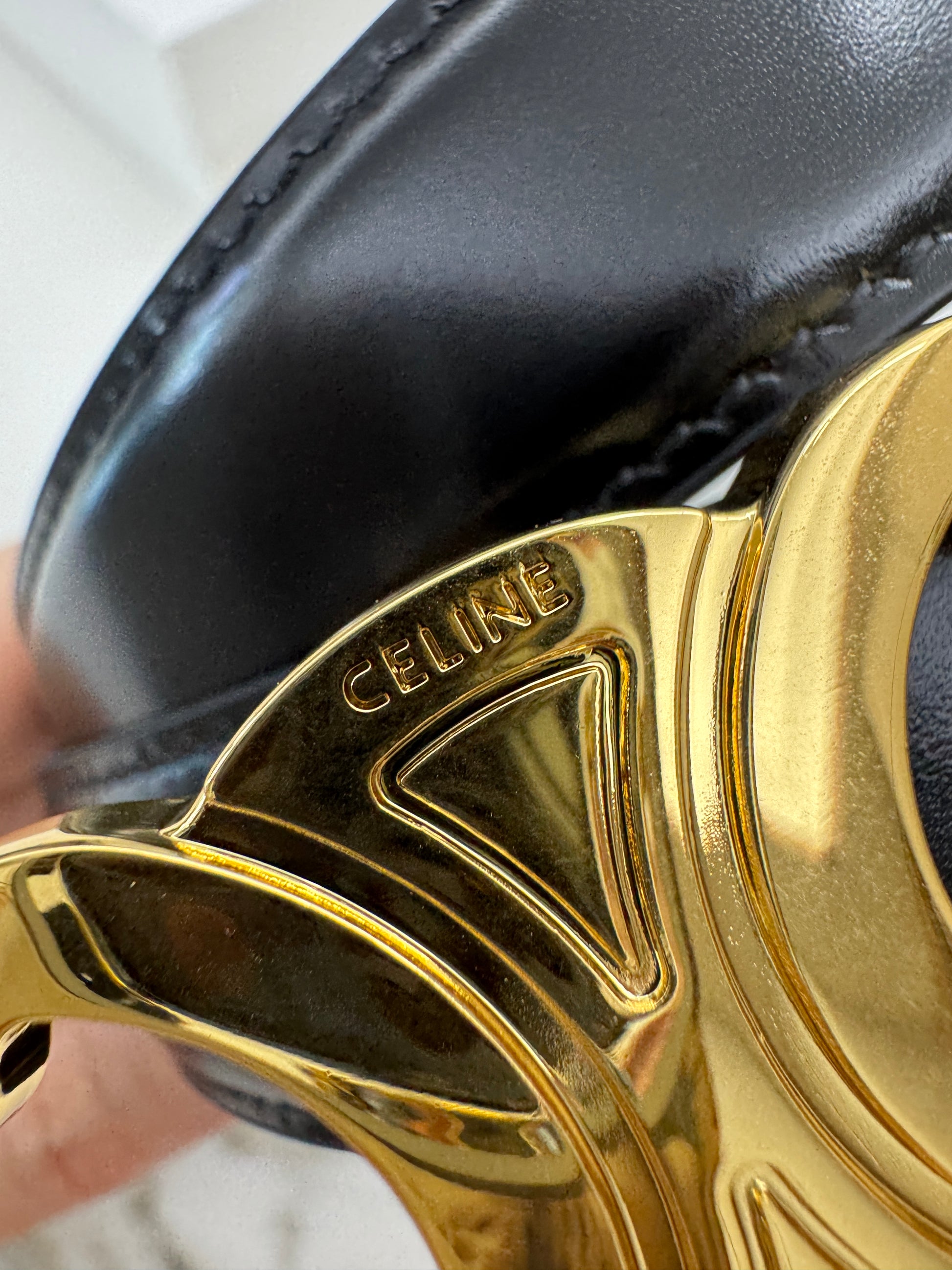 CELINE 凱旋門金扣 2.5cm皮帶 亮面牛皮