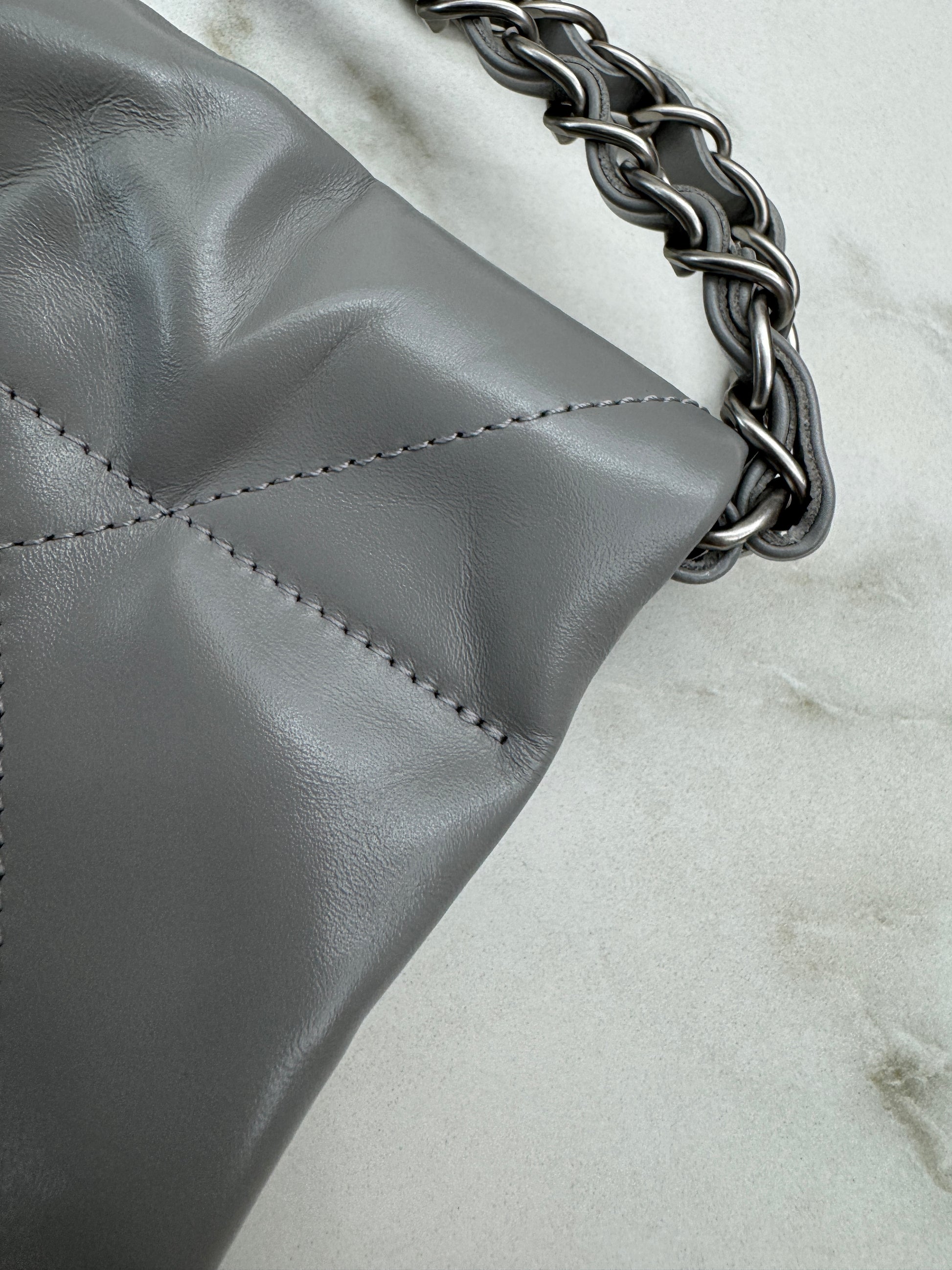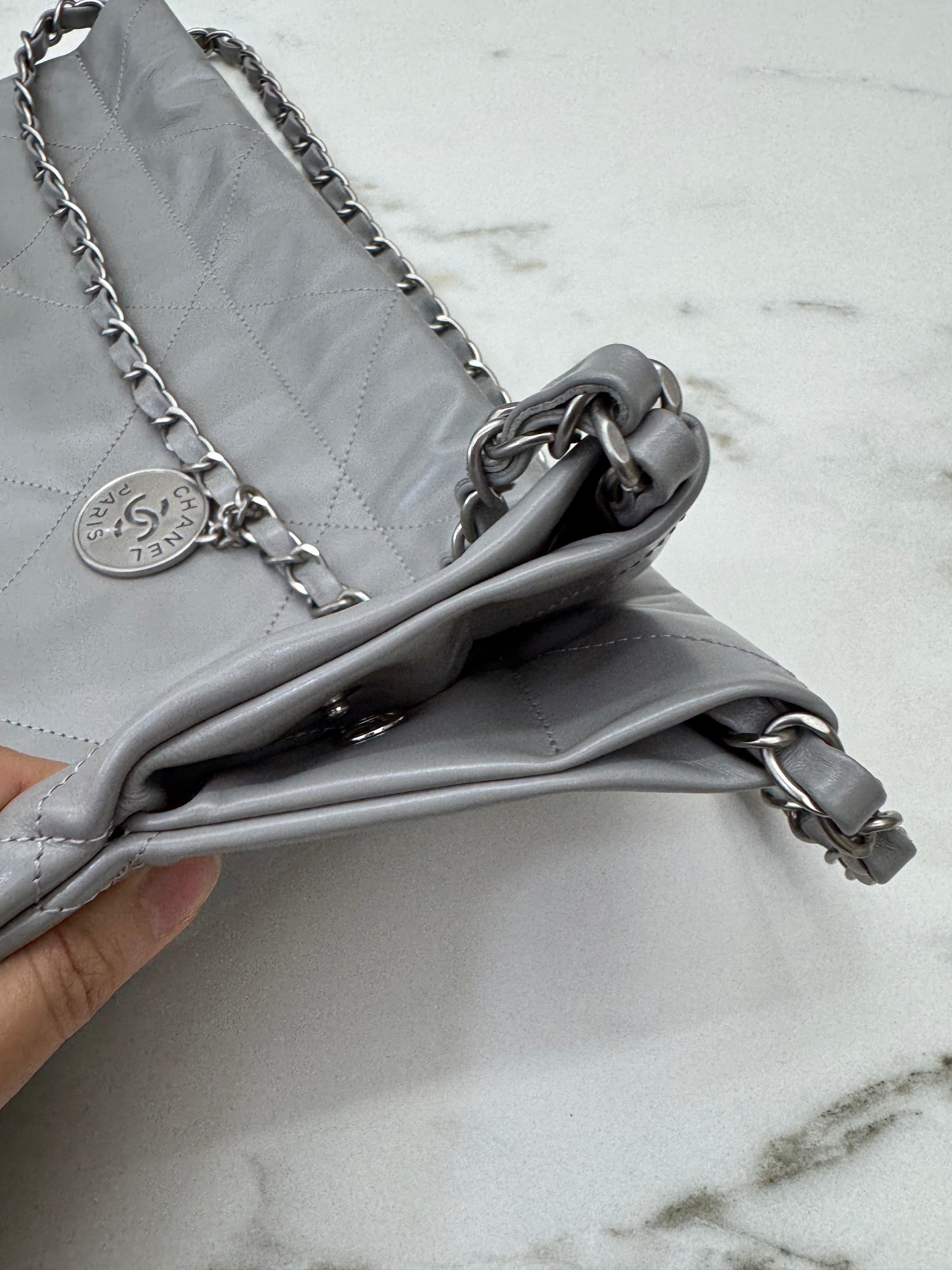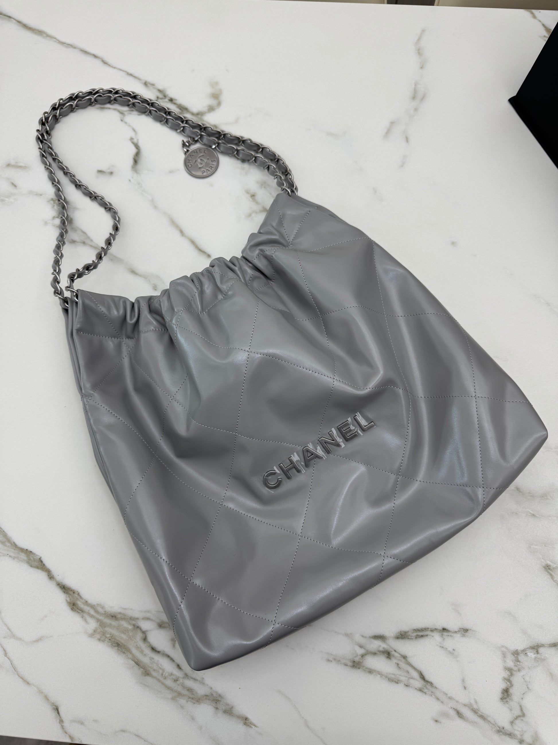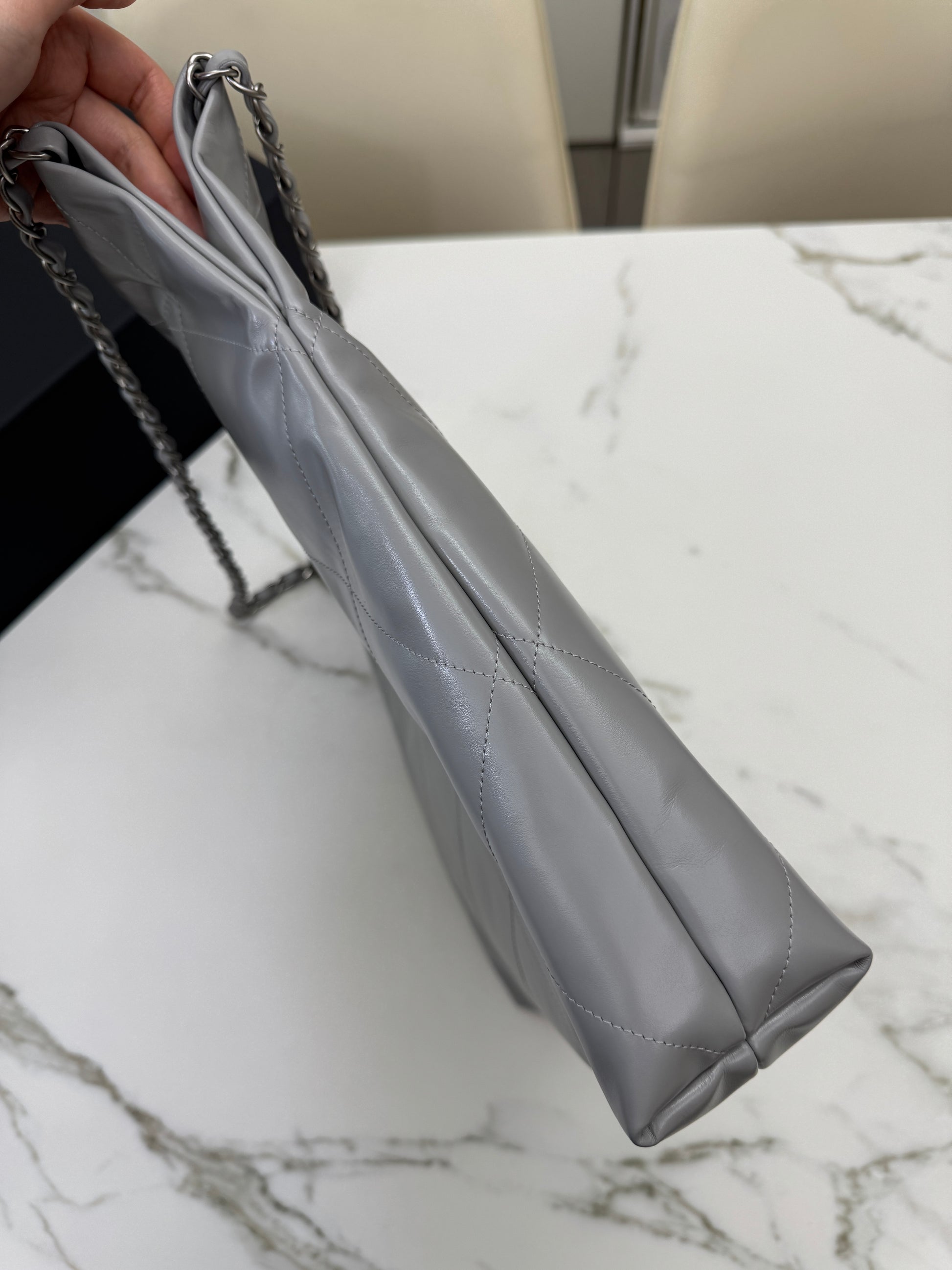 CHANEL 22 Bag Medium 23C淺灰色銀扣
