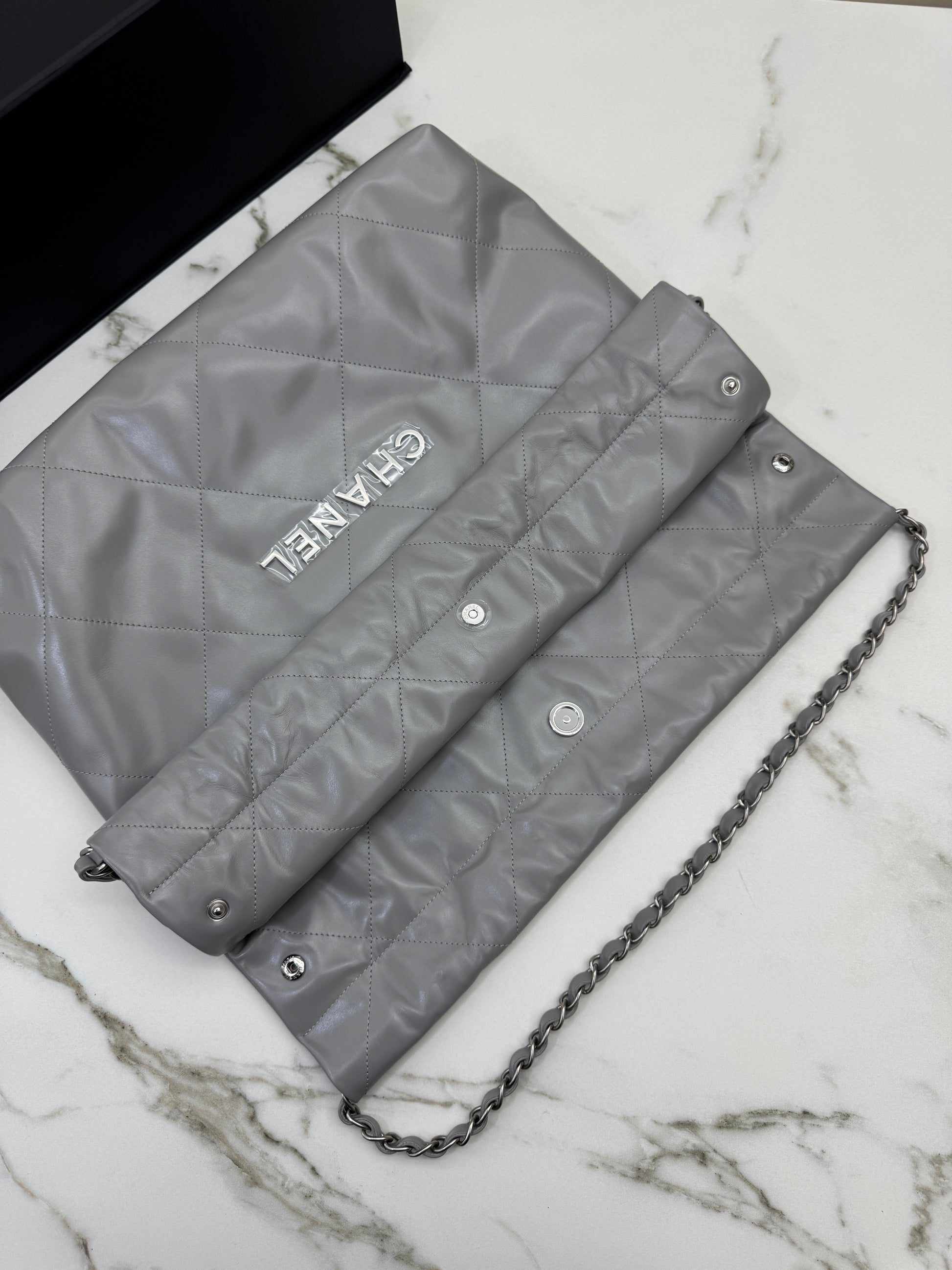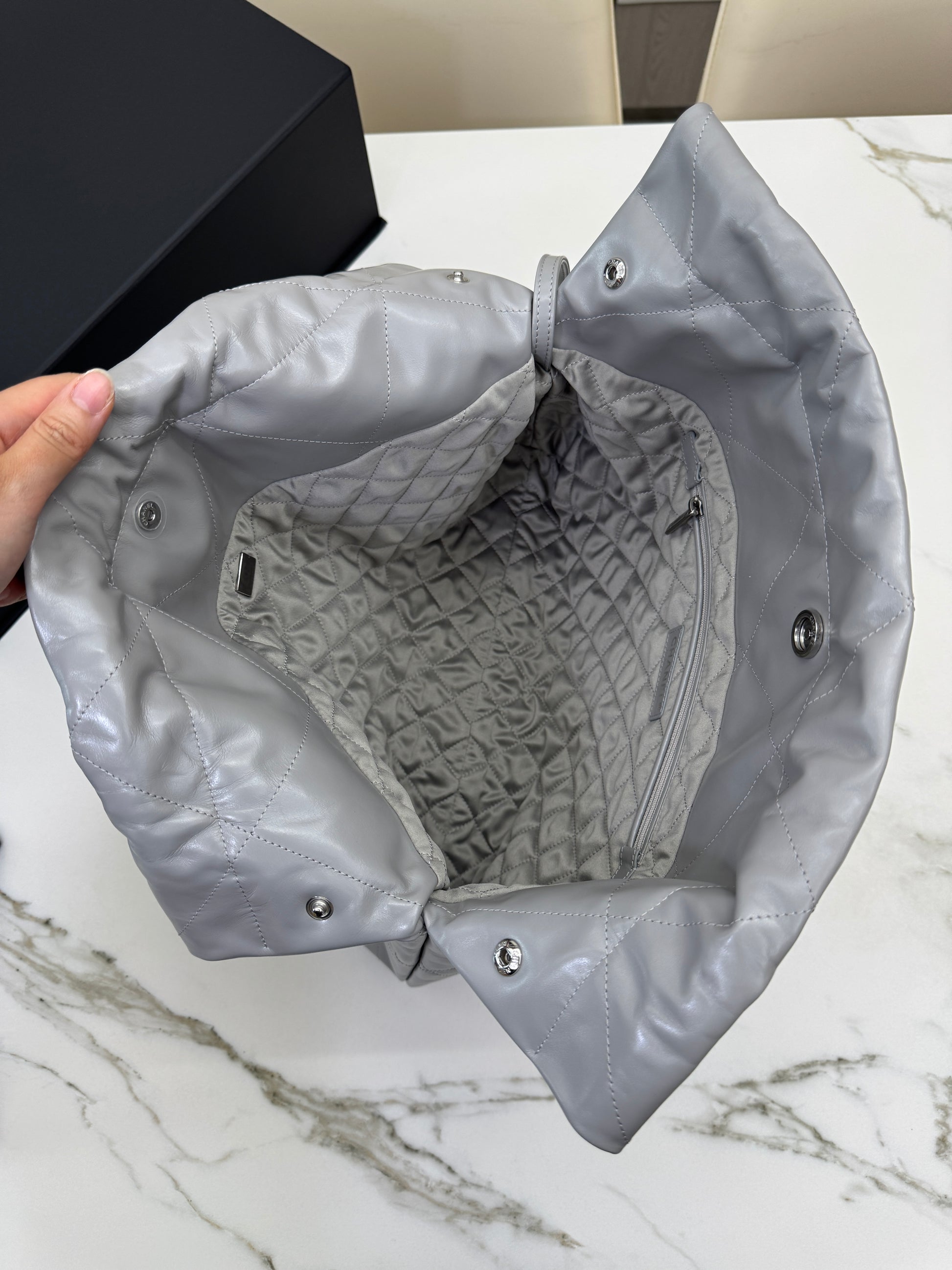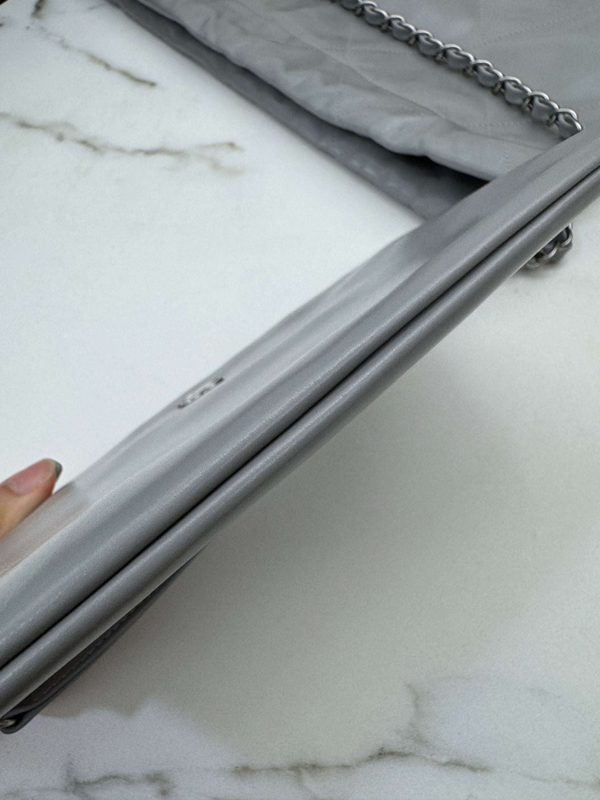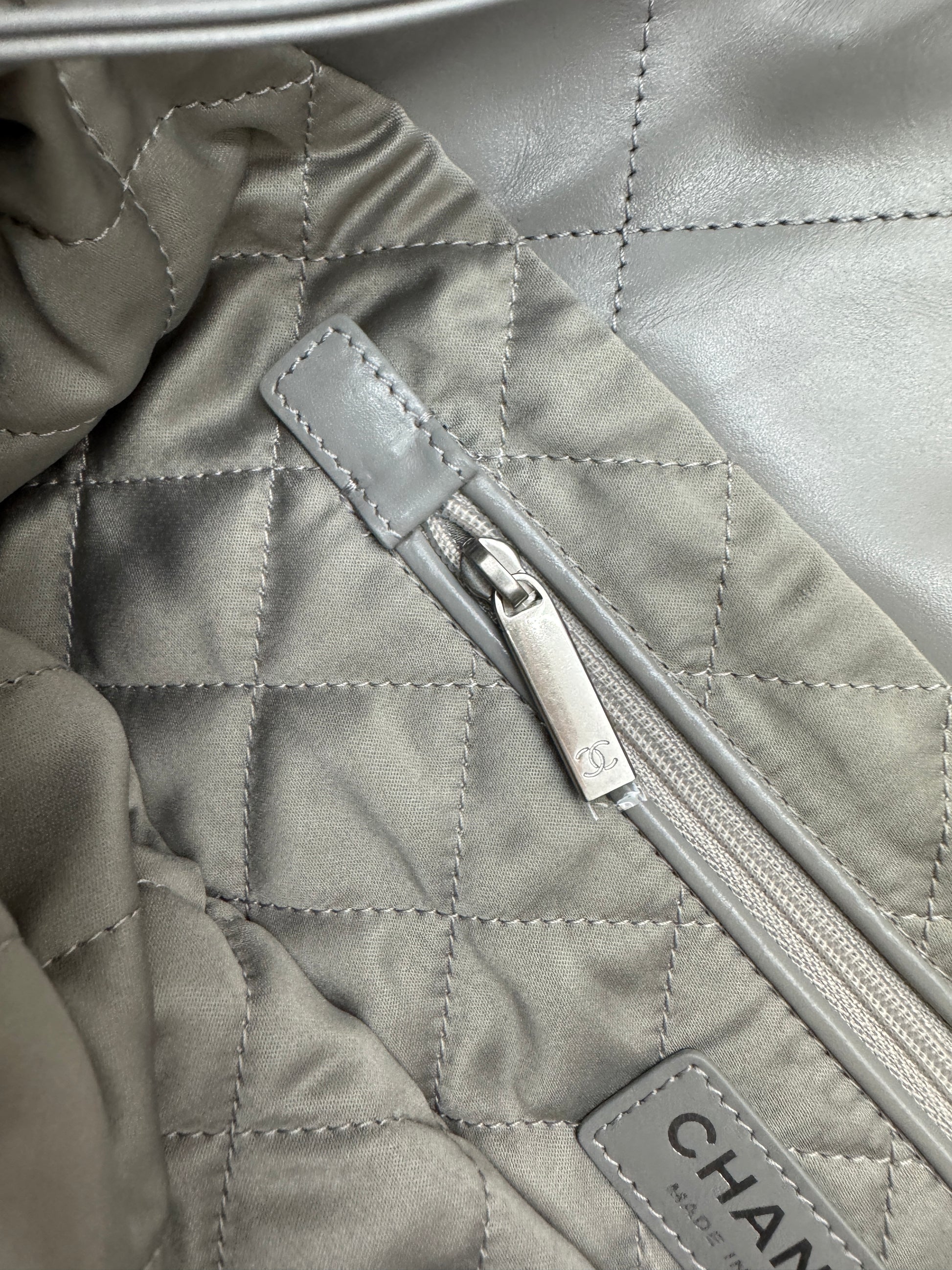 CHANEL 22 Bag Medium 23C淺灰色銀扣