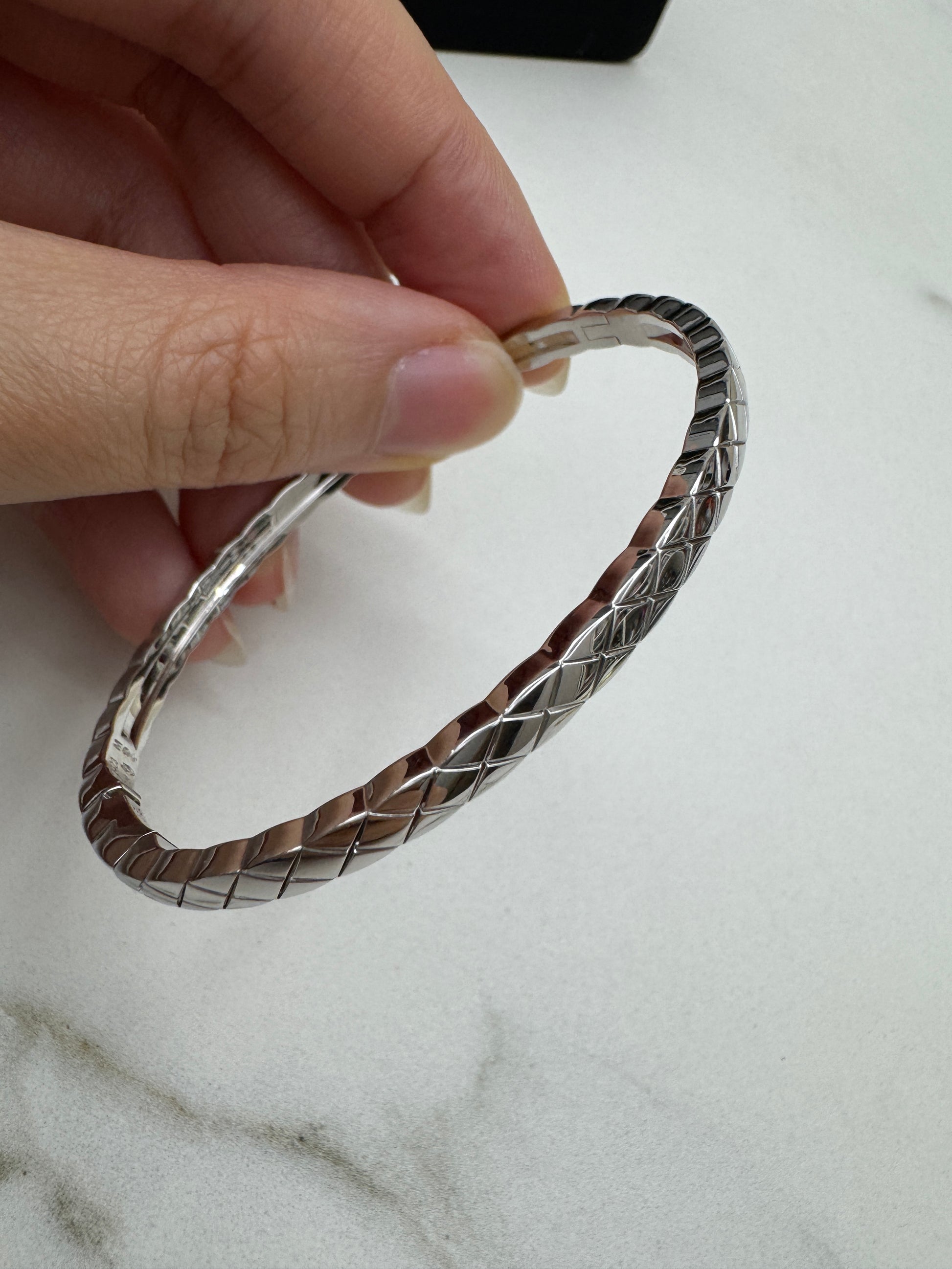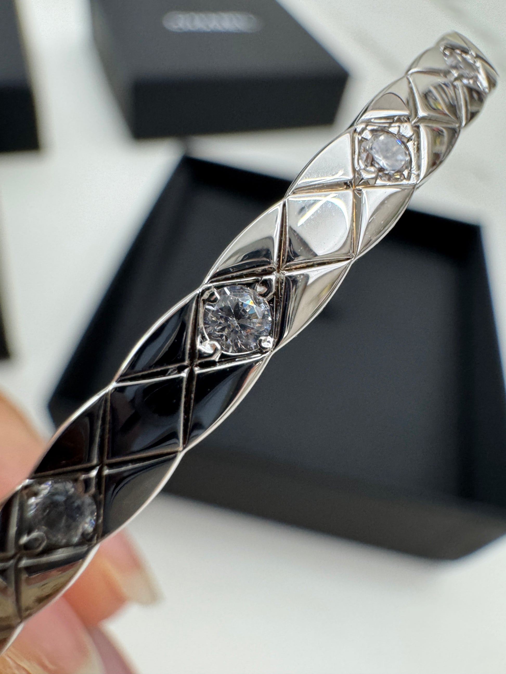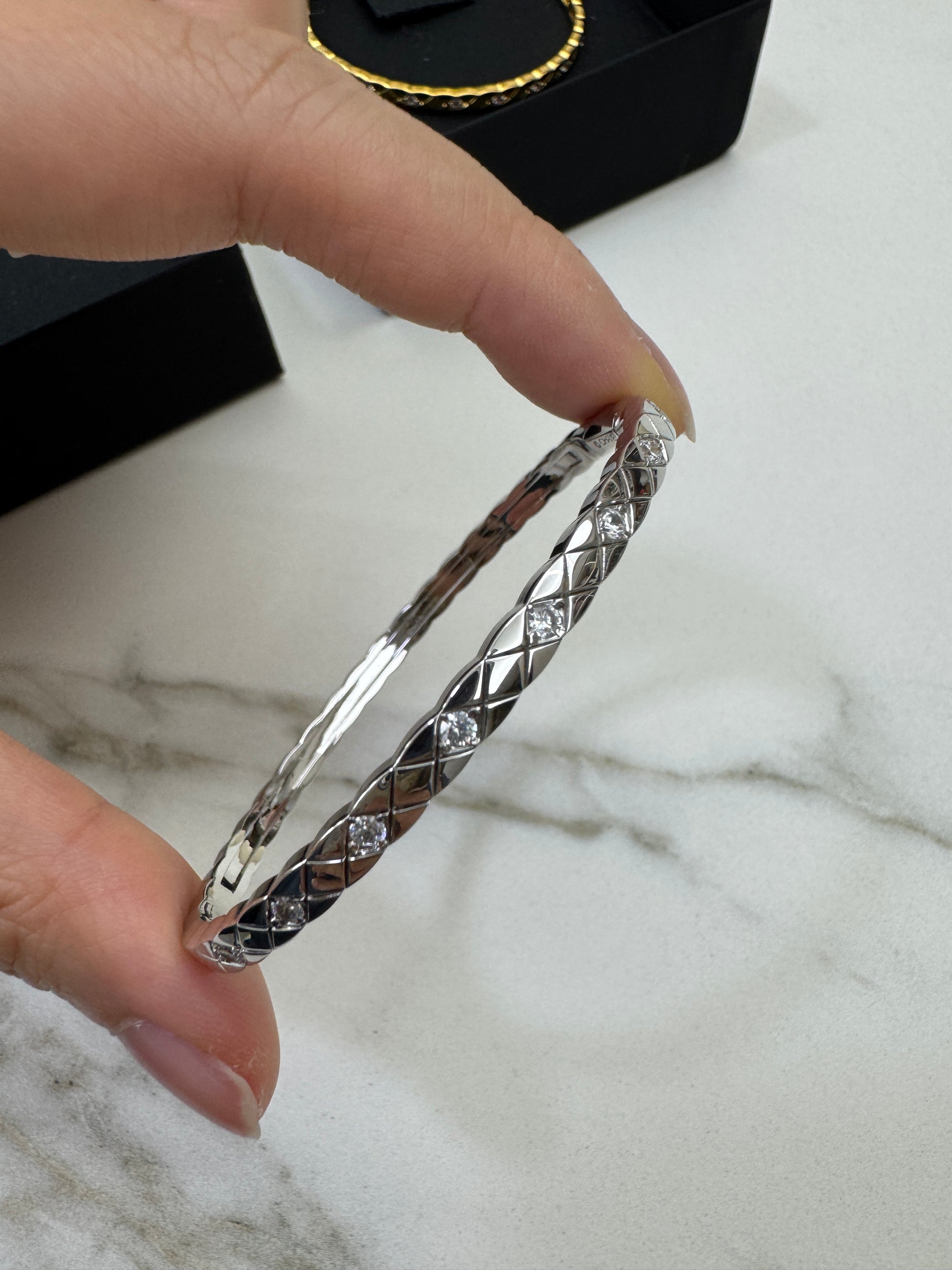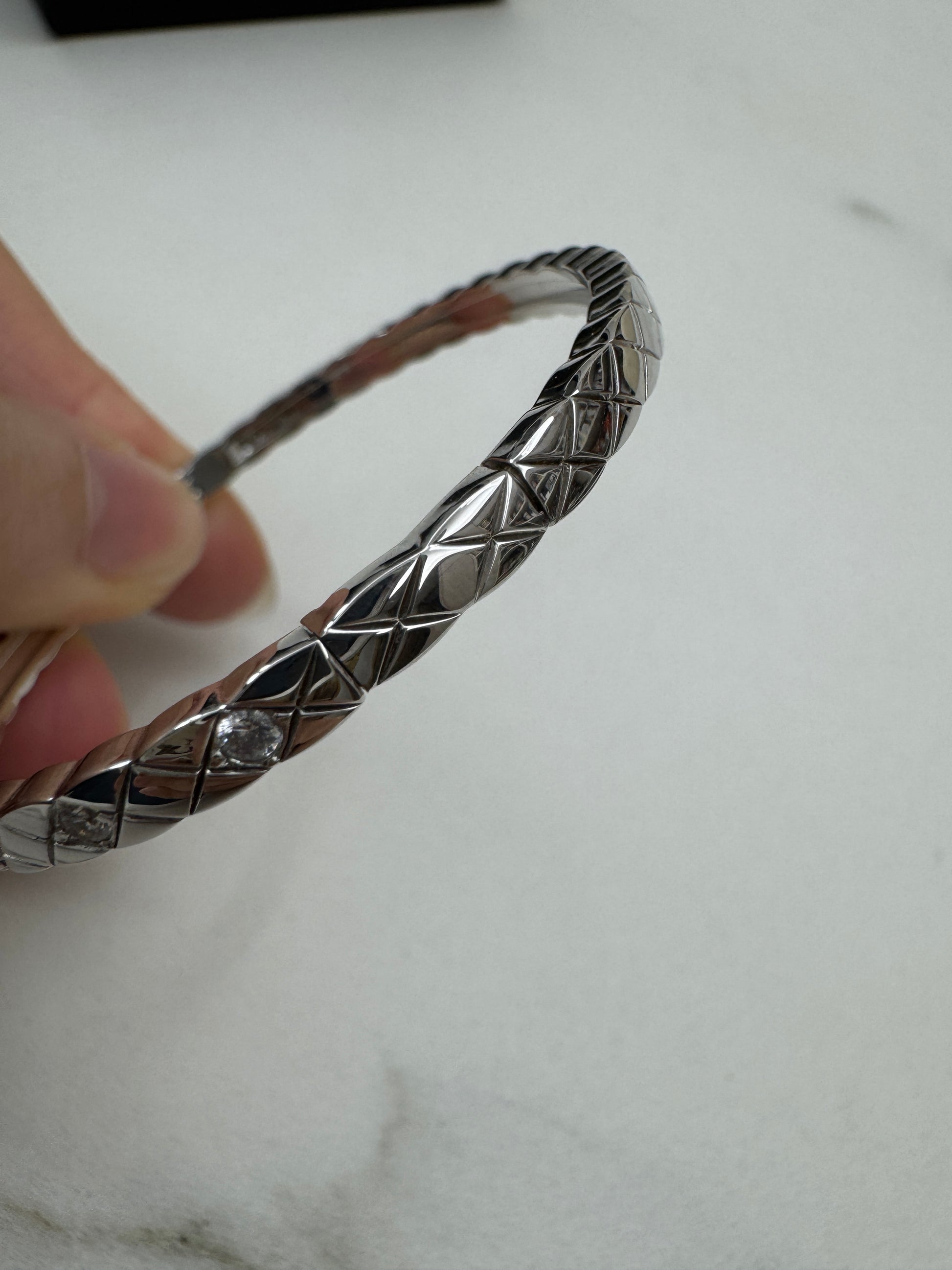 CHANEL Coco Crush 半鑽手鐲 白金色