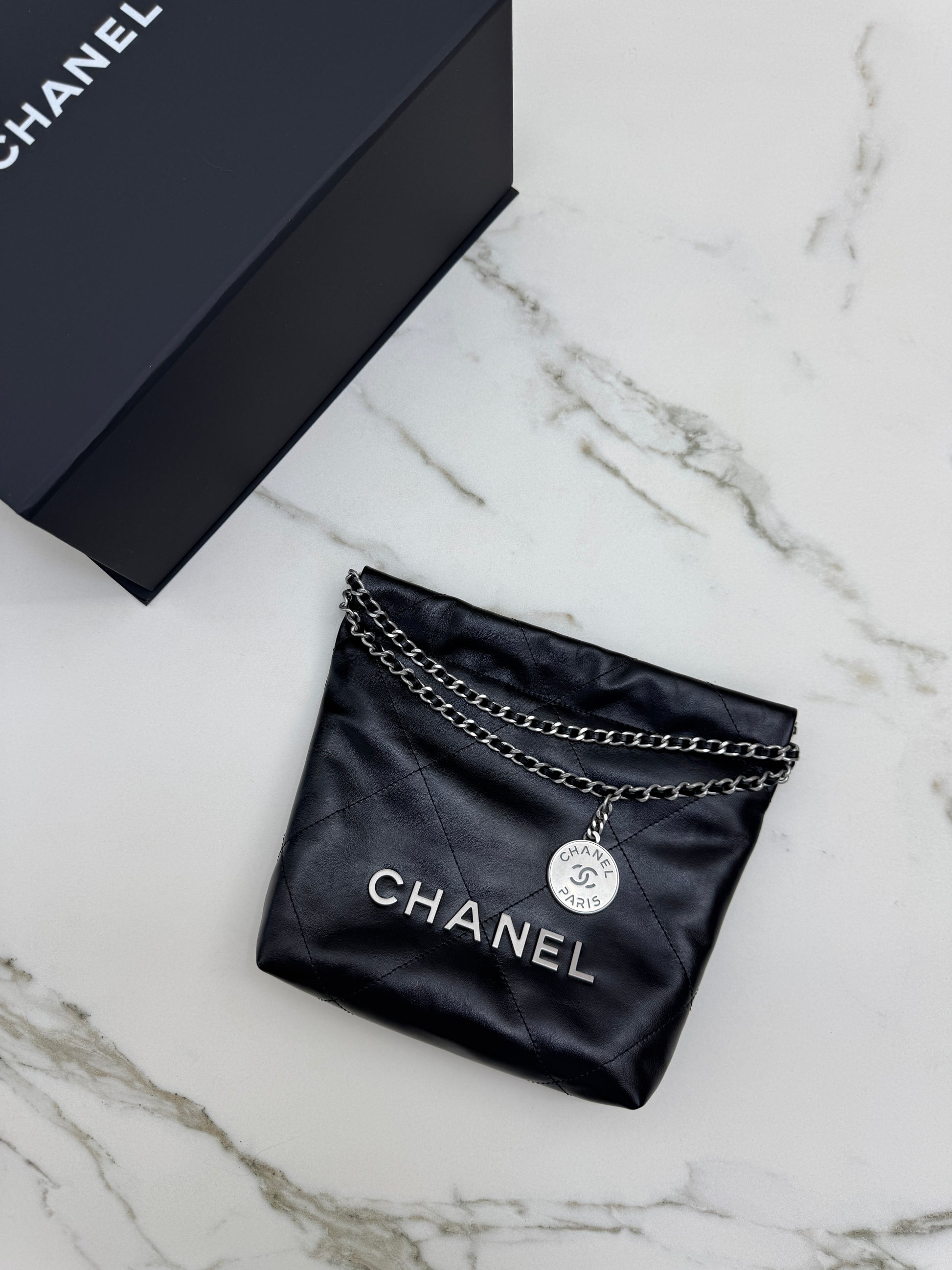 CHANEL Mini 22 Bag 黑銀 【同步最新磁吸扣版】
