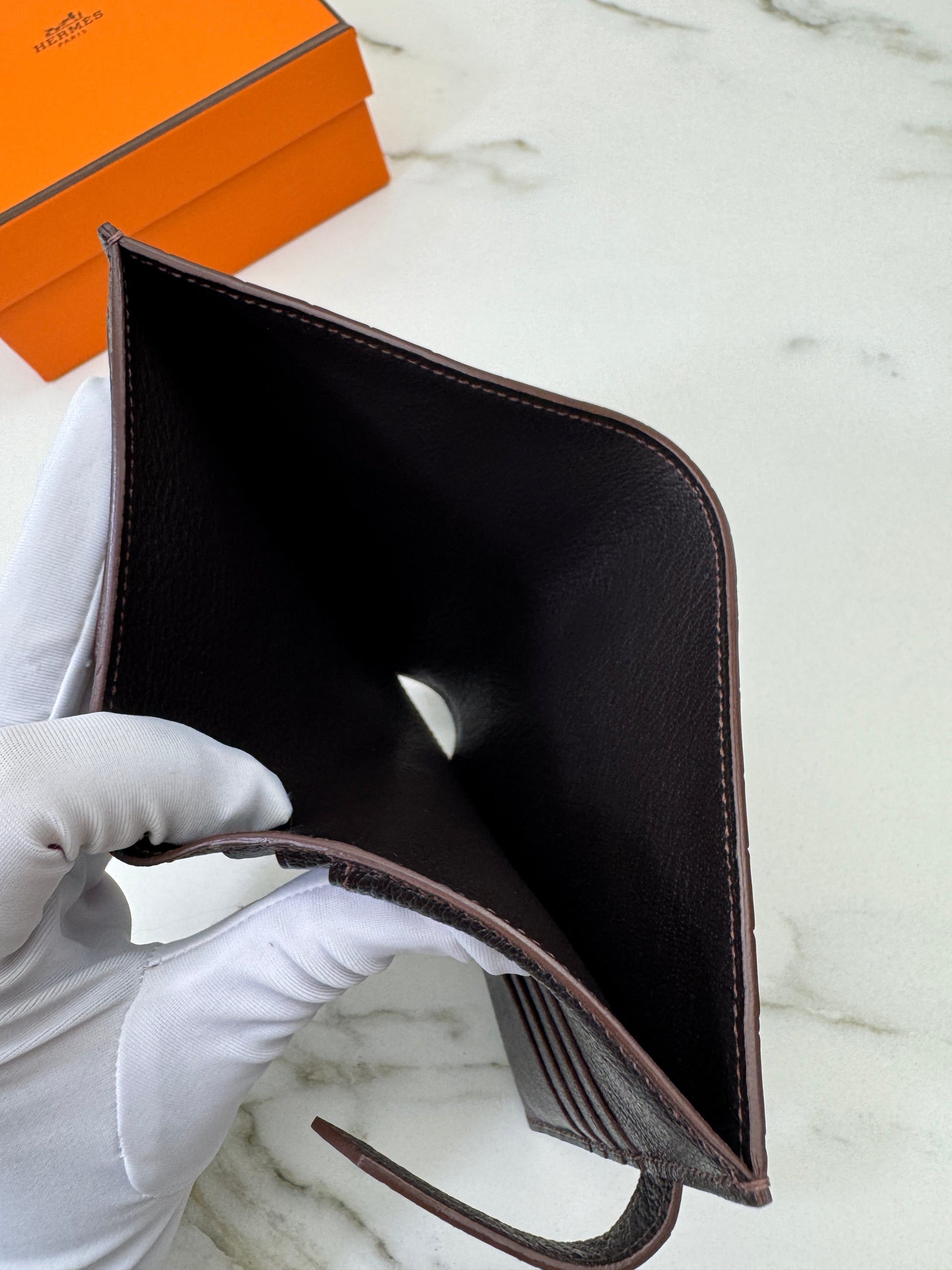 HERMES Bearn Wallet 亮面灣鱷 巧克力色 金扣 Porosus Crocodile Chocolate GHW