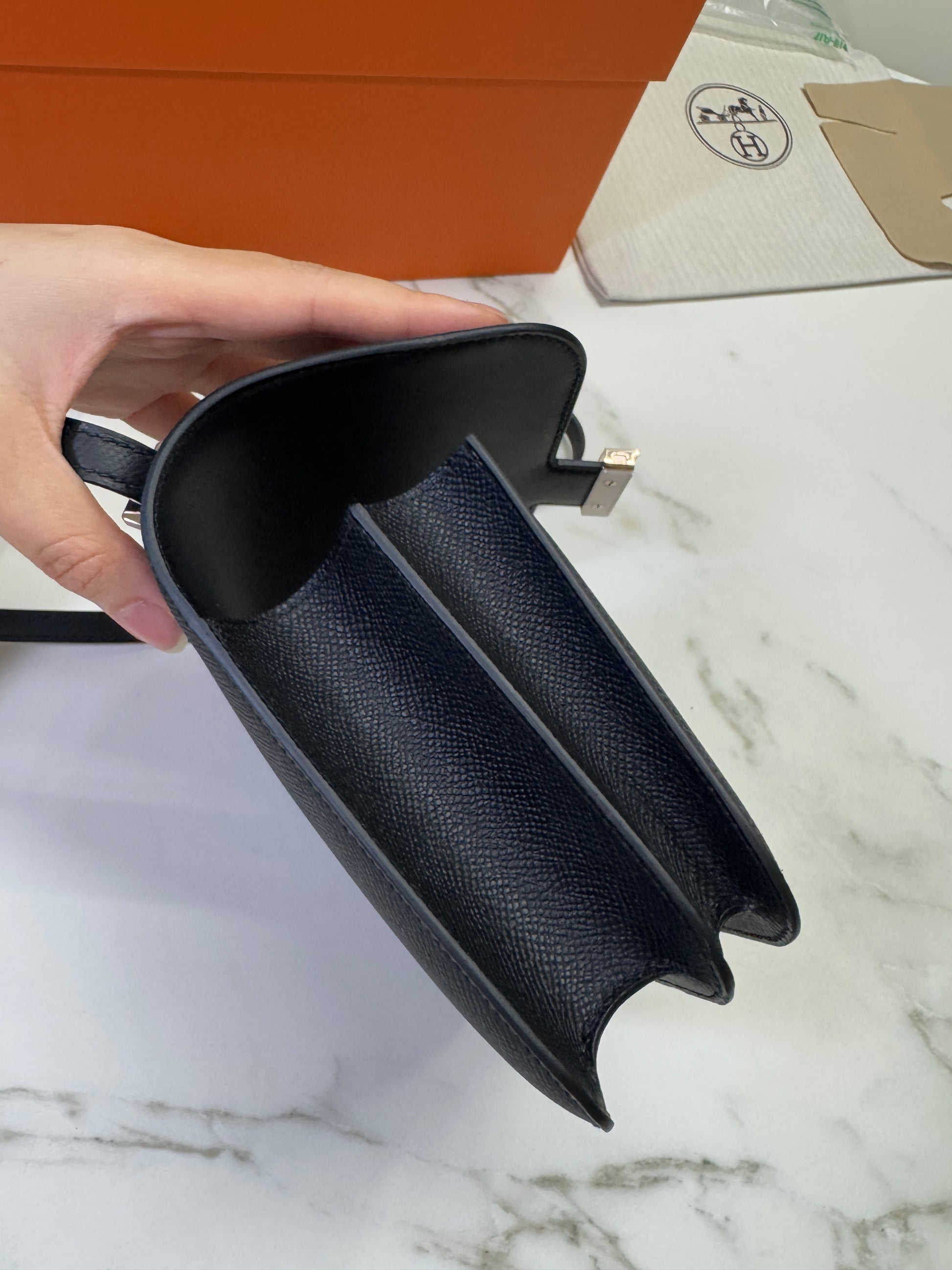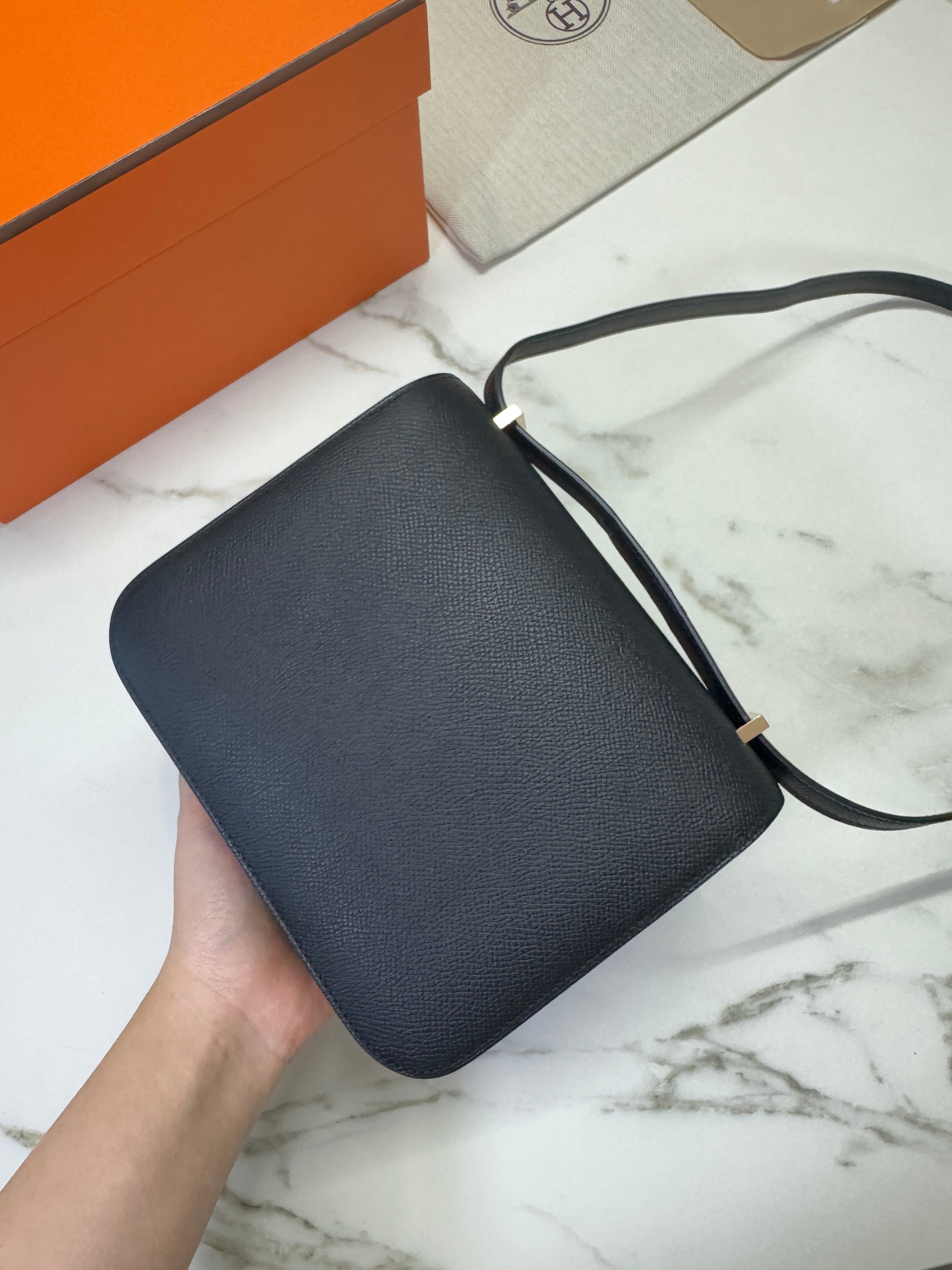 HERMES Mini Constance 黑色 玫瑰金扣 Epsom