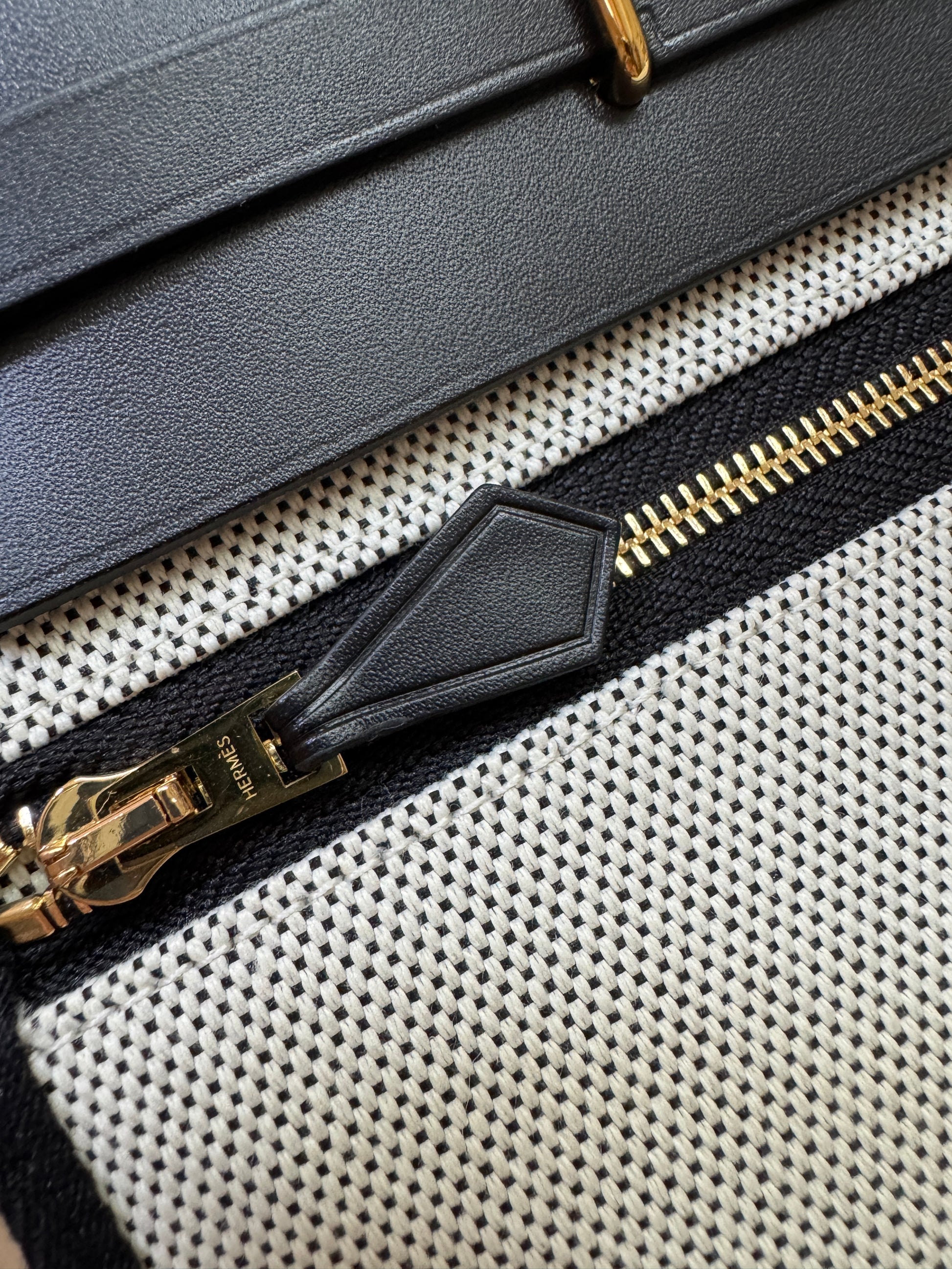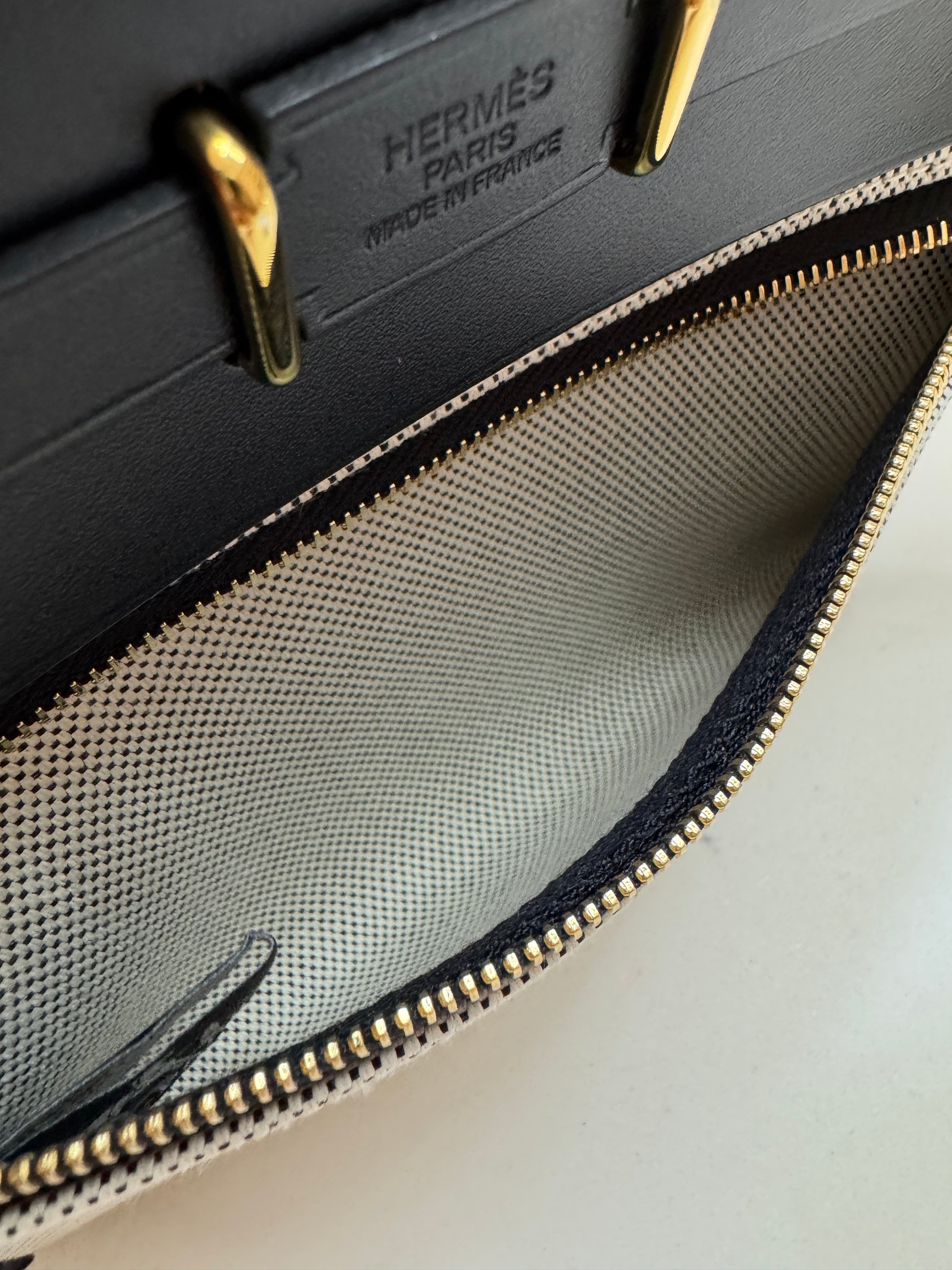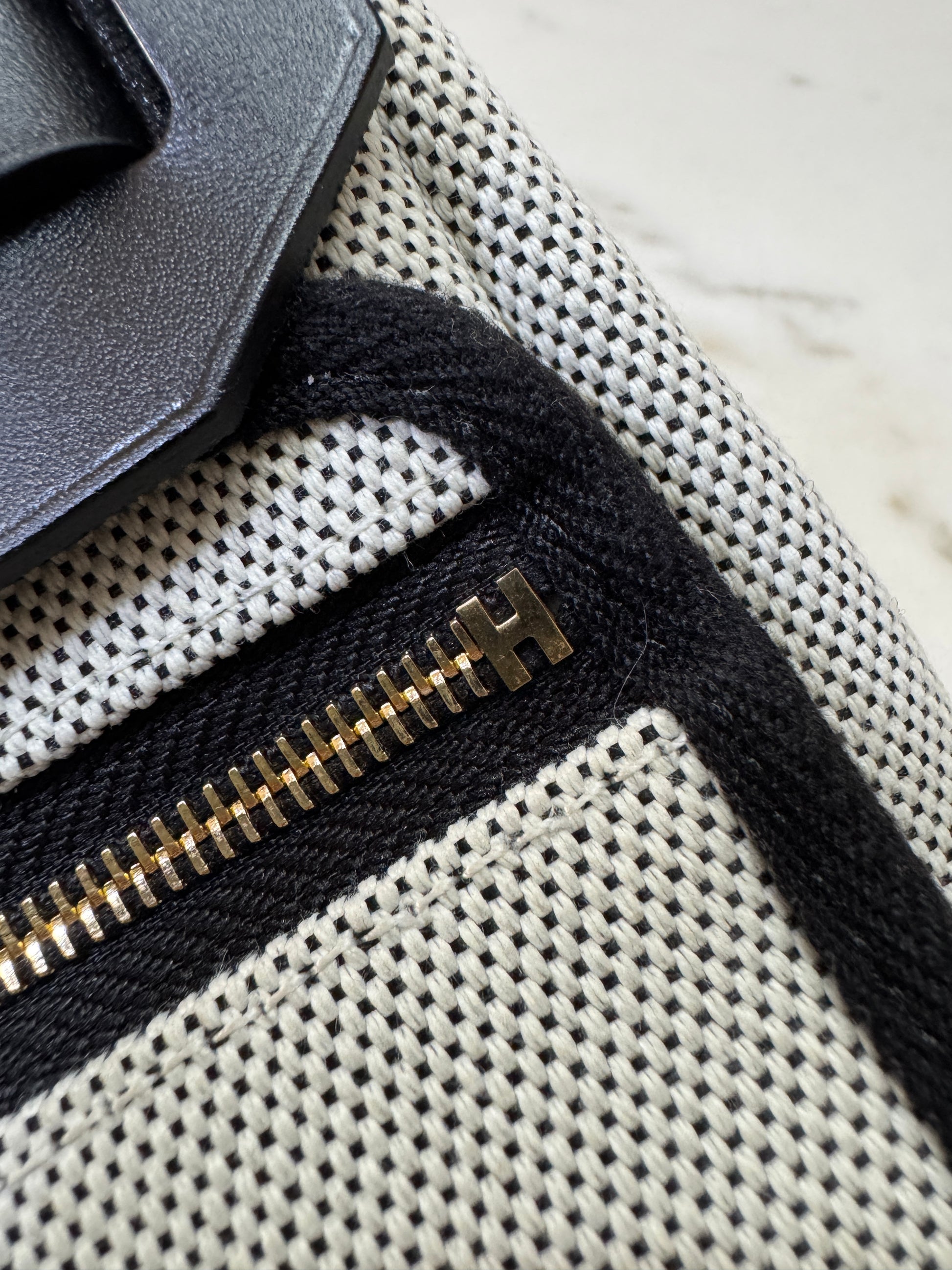 HERMES Mini Herbag 熊貓色 金扣 H Viking 帆布