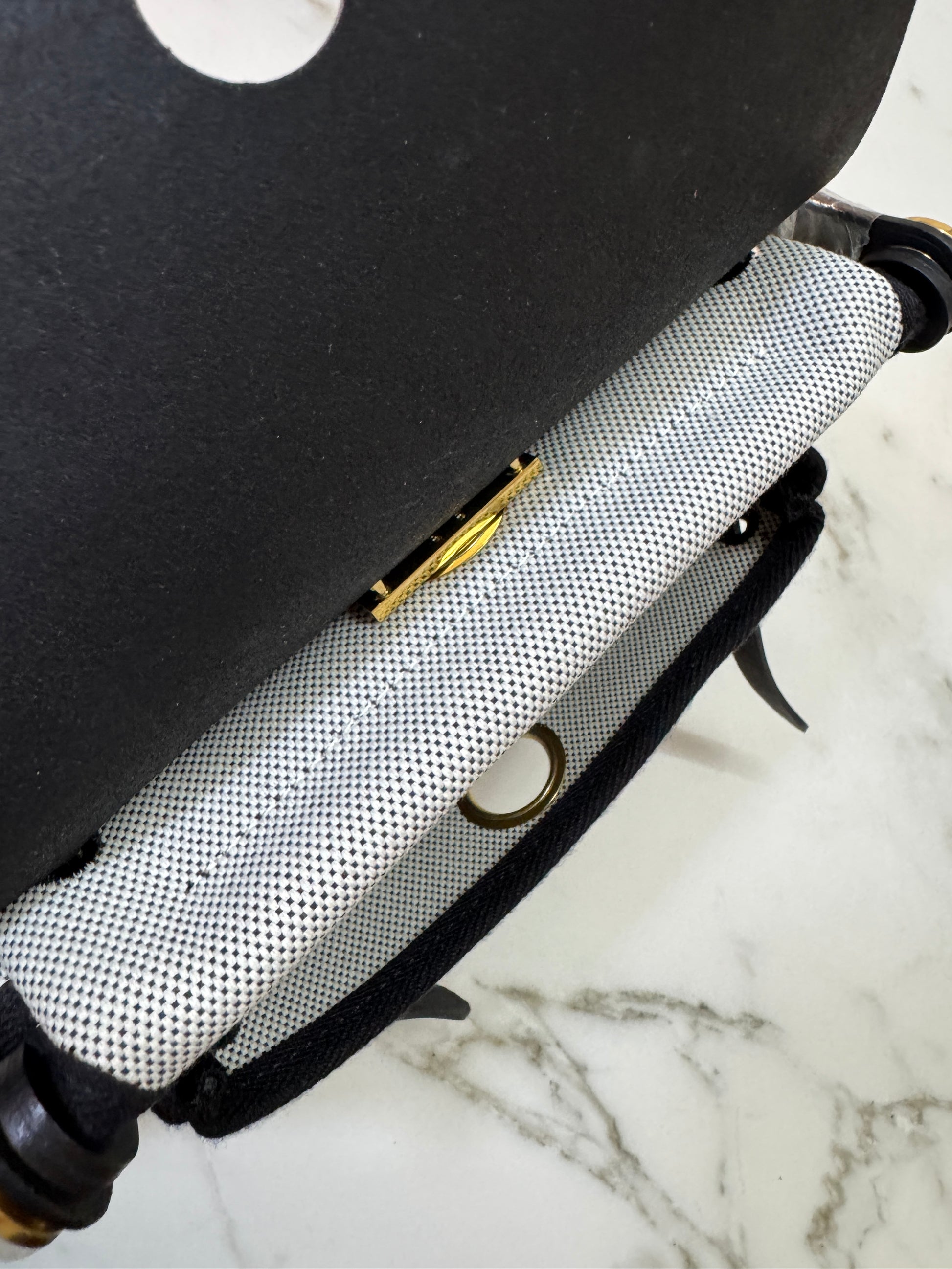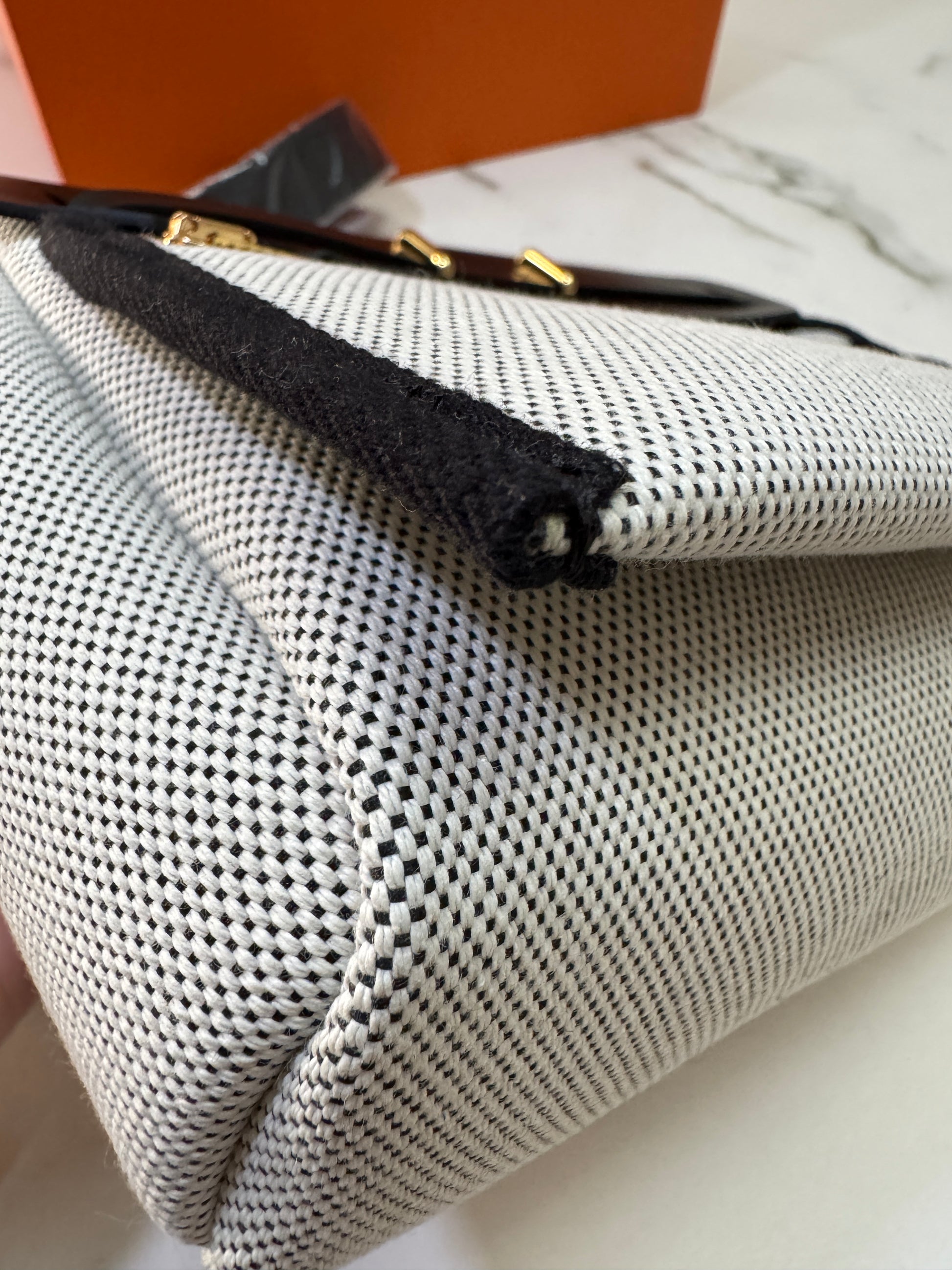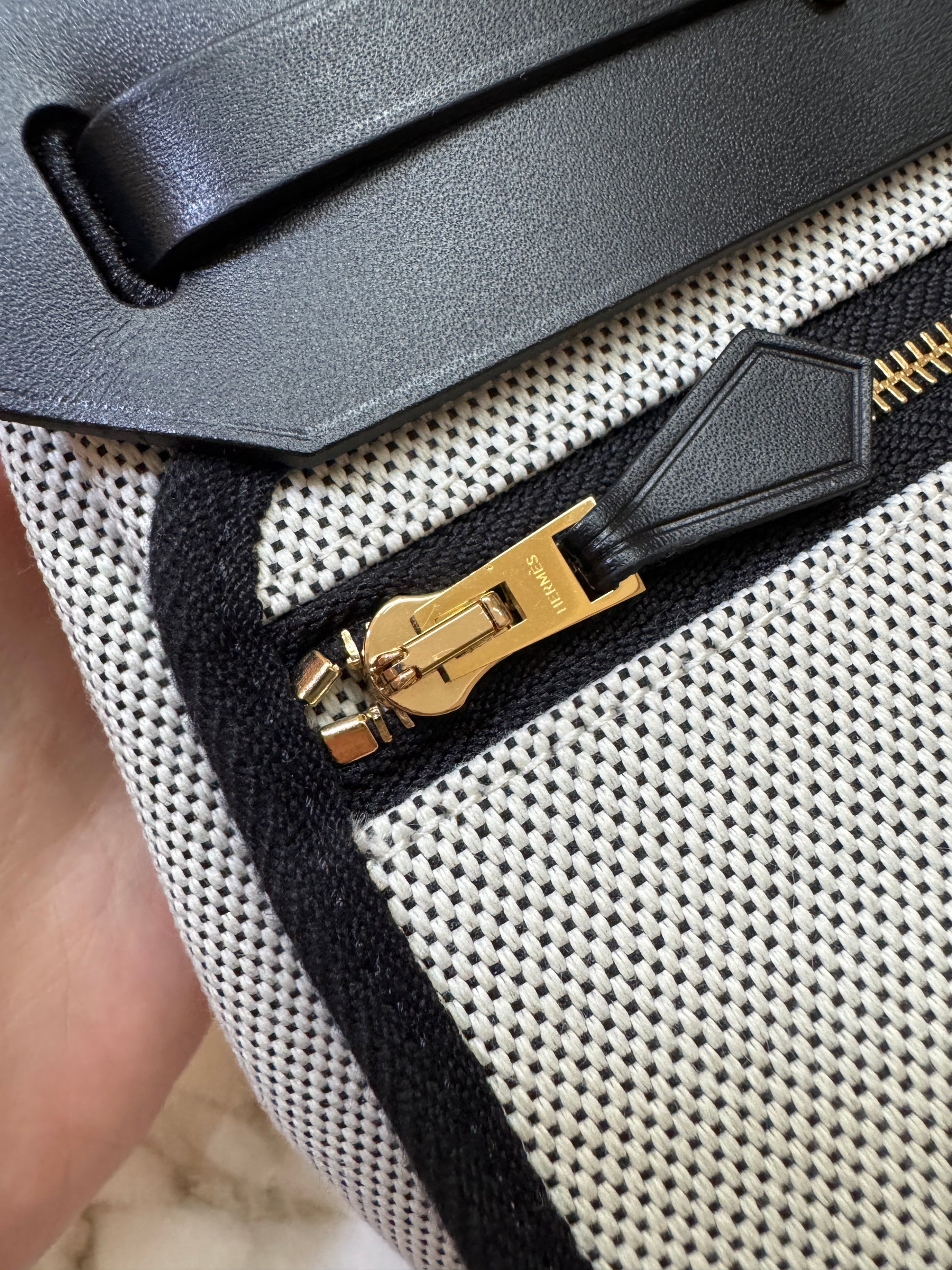 HERMES Mini Herbag 熊貓色 金扣 H Viking 帆布