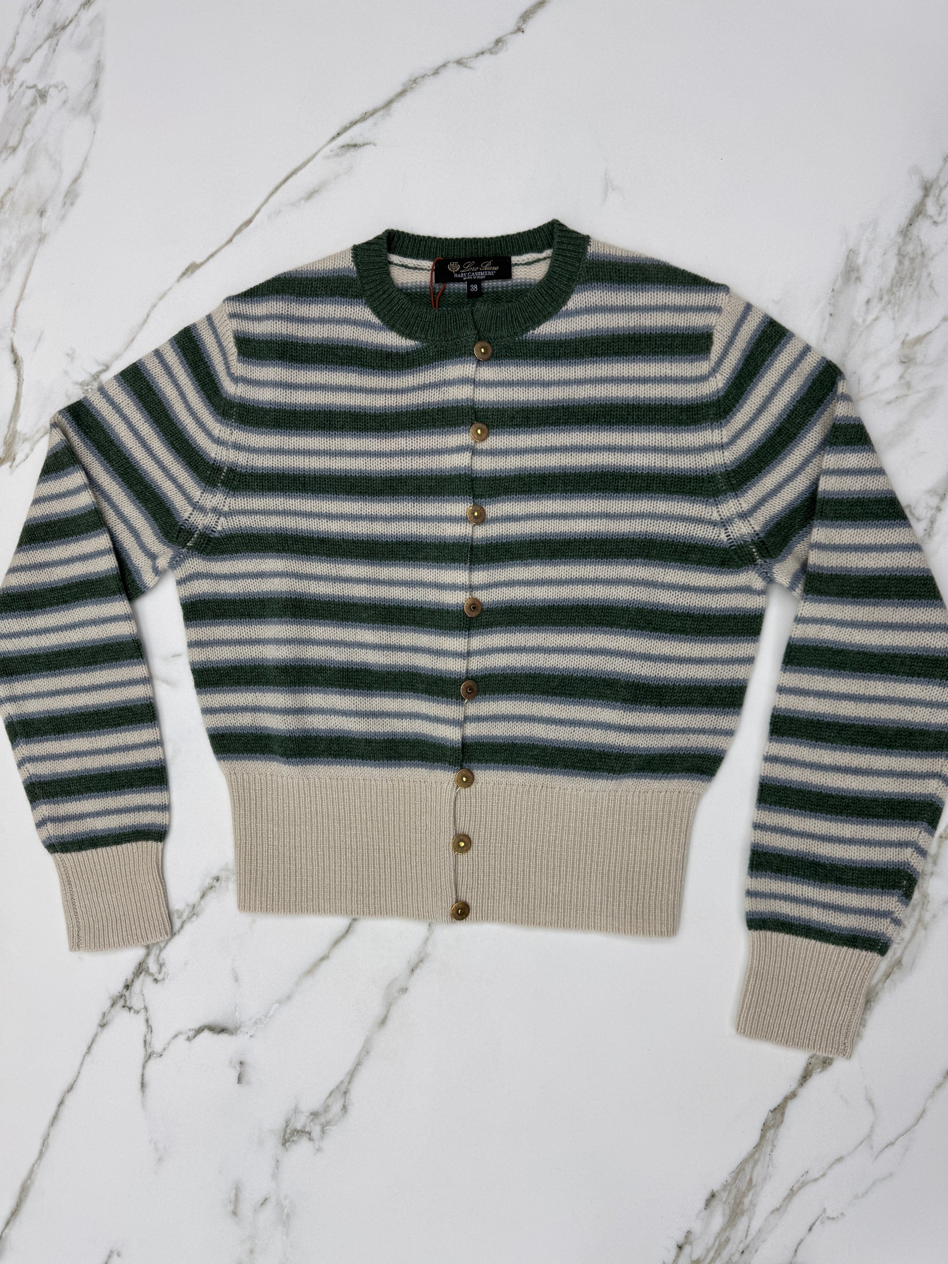 LORO PIANA Baby Cashmere Fobello Stripes Cardigan Green