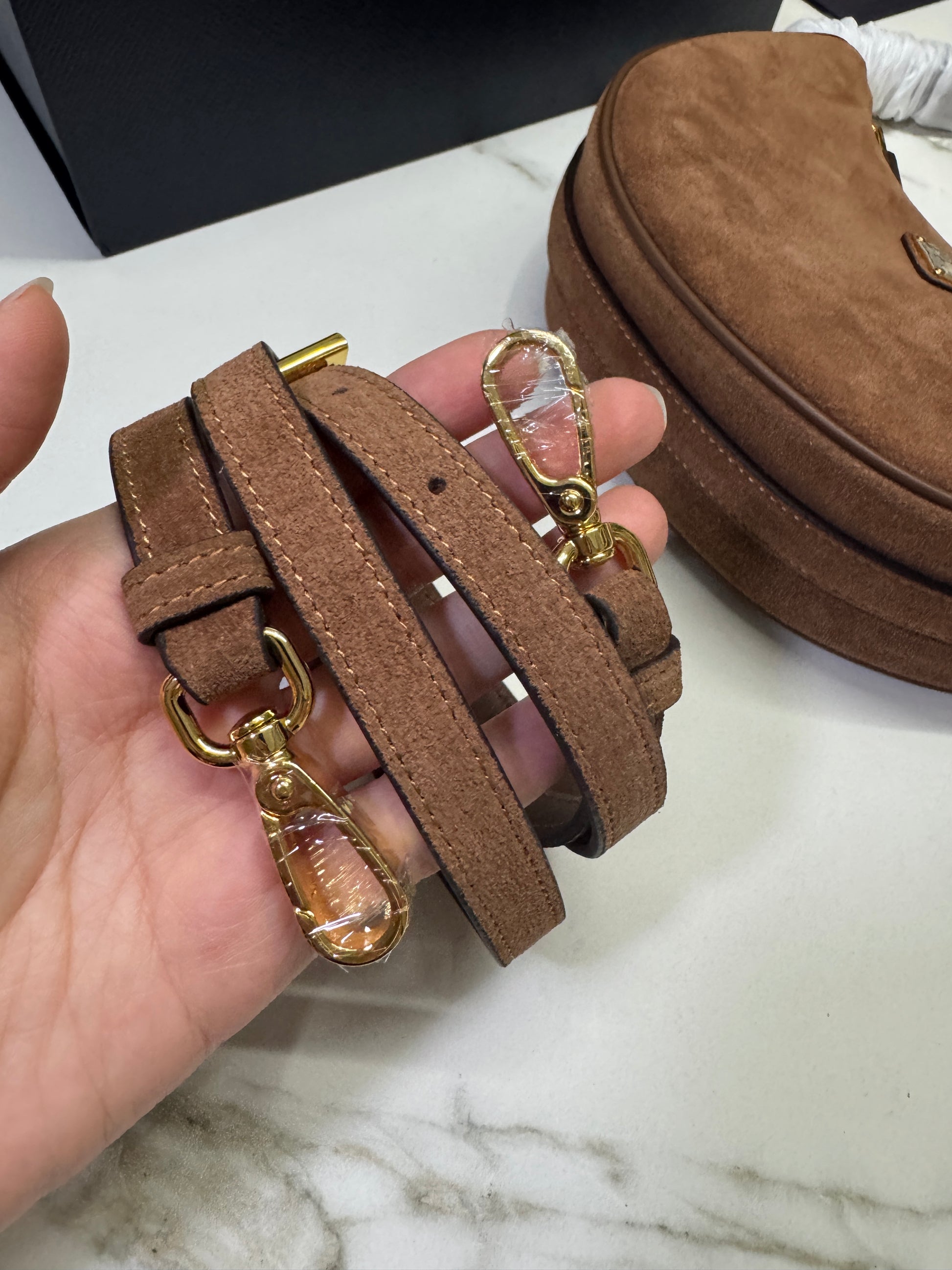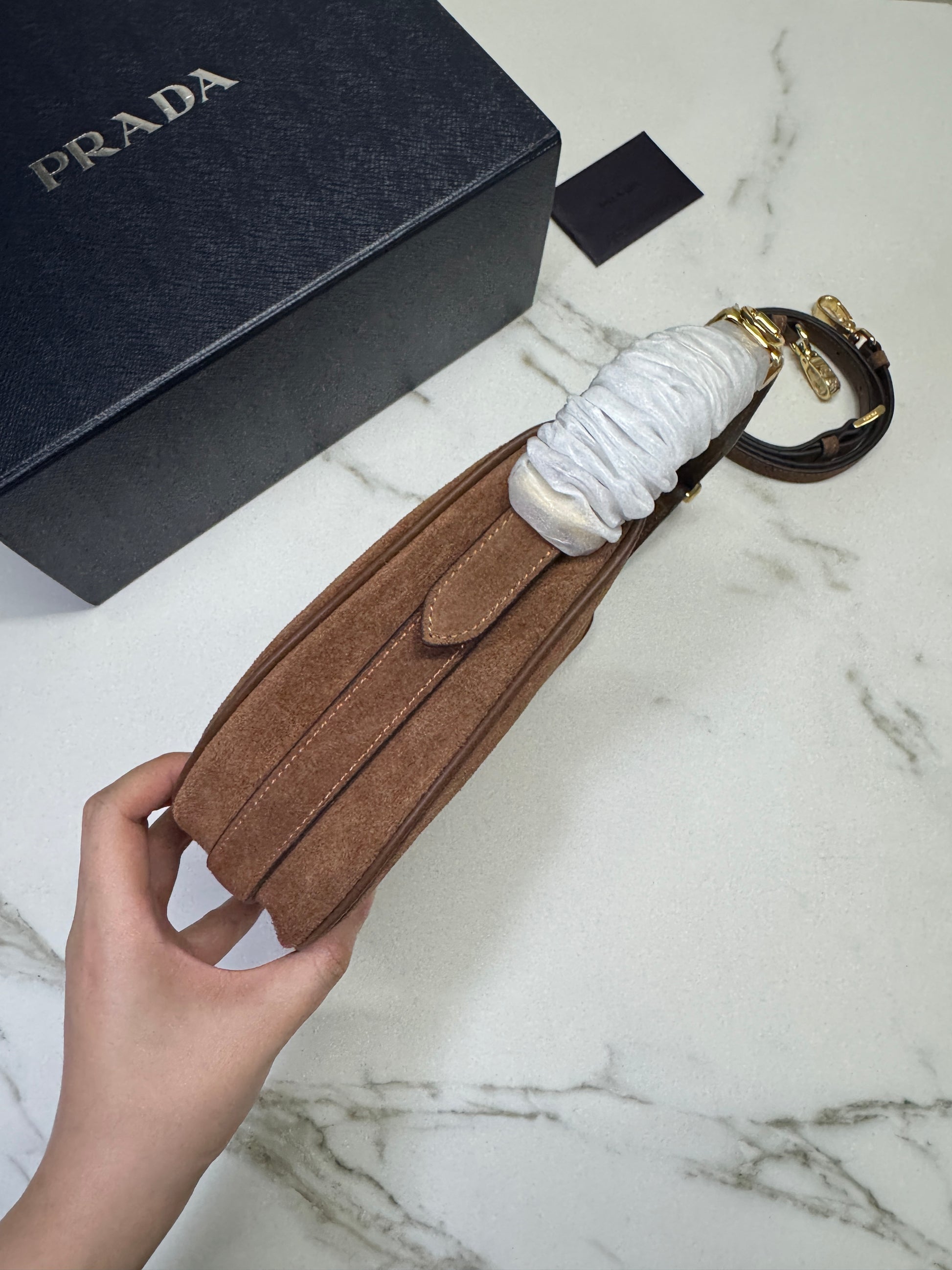 PRADA 半月包 麂皮棕色